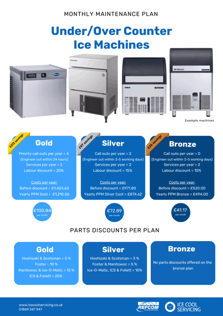 Our Under / Over Counter Ice Machine Service – Monthly Plan is designed to protect your investment, ensuring your ice is always crystal clear and your operations run without a hitch. Minimum payment term is for 12 months.